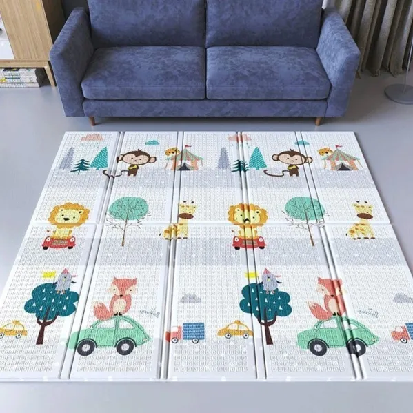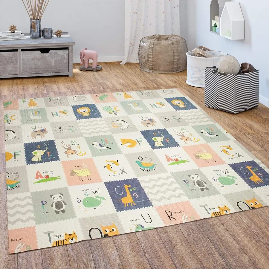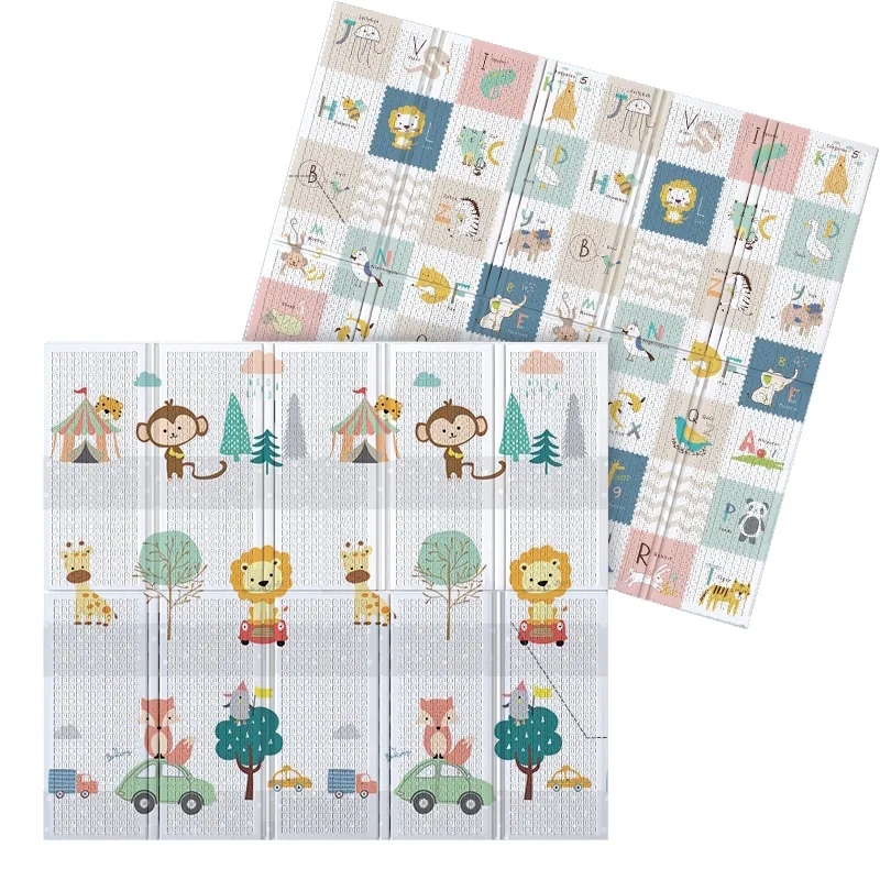 La alfombra de juego para bebé está hecha de material amortiguador XPE de alta gama. La alfombra de gateo adopta una película mate de PE de doble cara. Está hecha de material de alta densidad que puede reducir eficazmente la fuerza de impacto, aumentar la fuerza de fricción y evitar golpes. Absorción de impactos espesante, fuerza uniforme, protege las rodillas del bebé para ejercitar el equilibrio. Es suave y cómoao al tacto, bloquea la humedad y el calor de la superficie inferior. Impermeable y resistente a la suciedad. A partir de ahora, no hay miedo a las manchas y manchas de leche, y protege la salud de su bebé. El patrón de doble cara y el diseño alfanumérico satisfacen la curiosidad de tu bebé y cultivan la capacidad cognitiva de tu bebé.