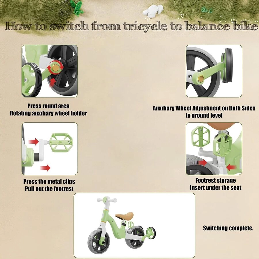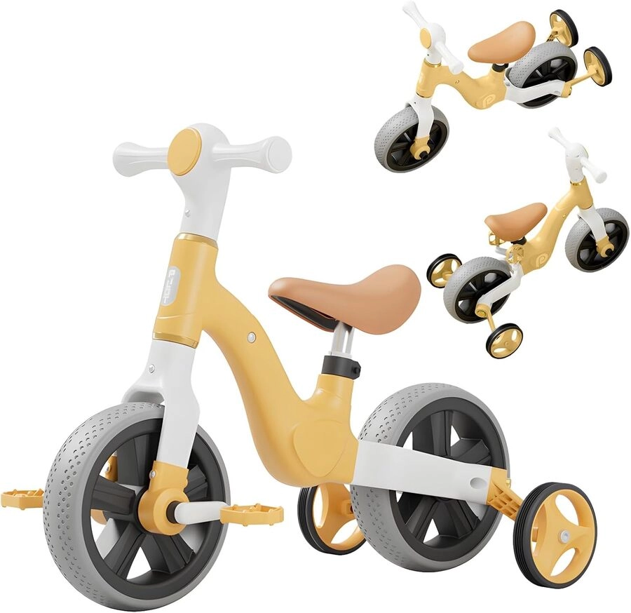 Una bicicleta que crece con tu hijo, combinando bicicleta de equilibrio y triciclo en un solo diseño. Ideal para desarrollar equilibrio y coordinación desde los primeros años.