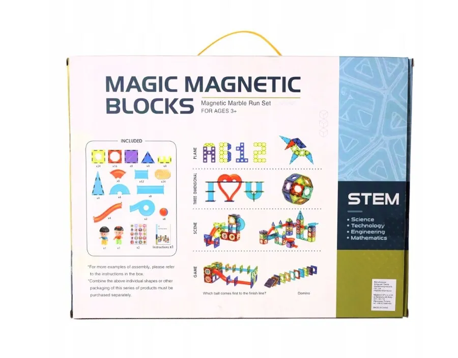 El juego de bloques incluye 132 piezas multicolores translúcidas de diferentes formas, que se pueden unir magnéticamente para construir pistas de carreras únicas y emocionantes. A medida que los niños exploran y experimentan con las piezas, desarrollan habilidades clave como la concentración, la coordinación y la interacción con sus pares. Contiene: 48 azulejos magnéticos cuadrados, 8 azulejos magnéticos triangulares, 36 tubos de construcción translúcidos, 32 ventanas giratorias y 8 canicas de plástico de colores para carreras rápidas. cción emocionante y coloridas calcomanías de dibujos animados, que permiten a tus hijos usar su imaginación y creatividad para construir el modelo que quieren. El proceso de construcción de modelos puede ayudarlos a mejorar el pensamiento lógico y la capacidad de resolución de problemas.