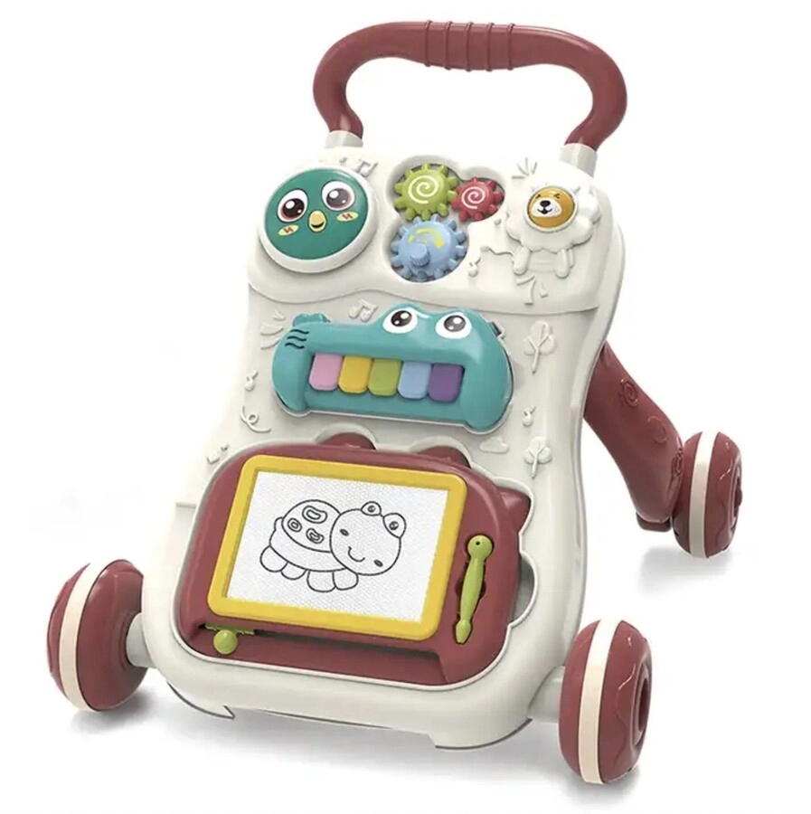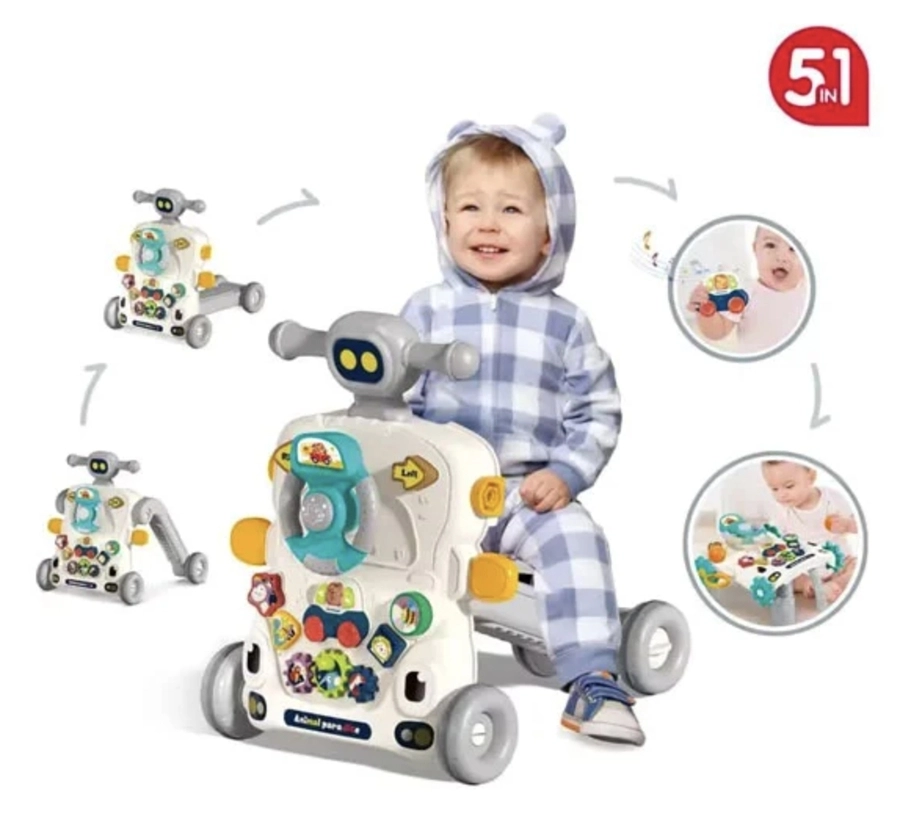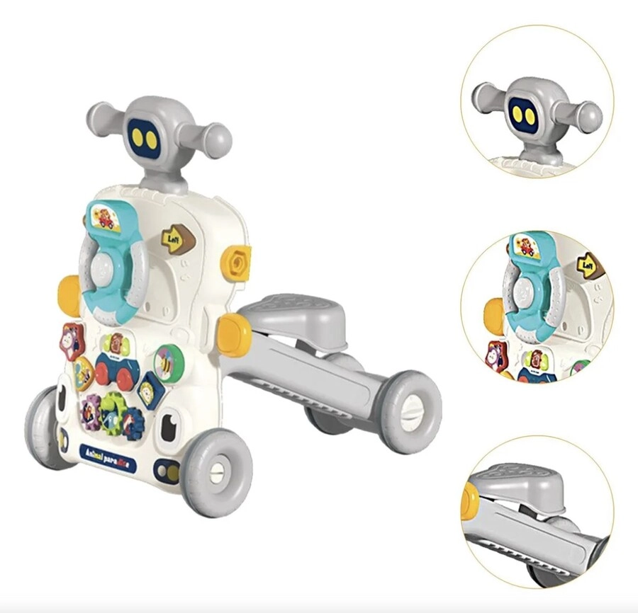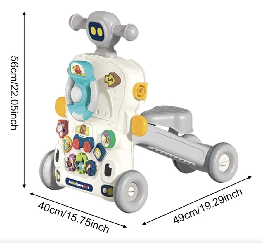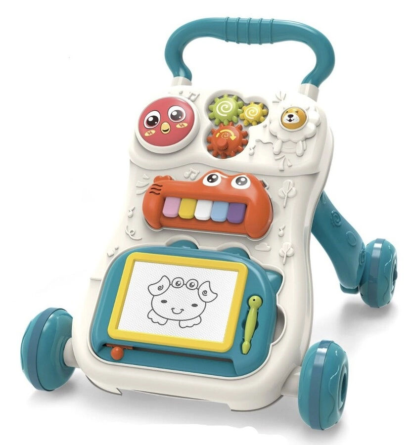 Este andador de bebé proporciona un centro de actividades para bebés, incluyendo bloques en forma de animal, equipo giratorio, piano musical y así sucesivamente, proporcionando varias formas divertidas de jugar.