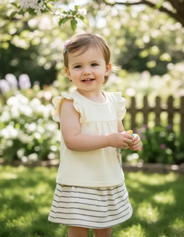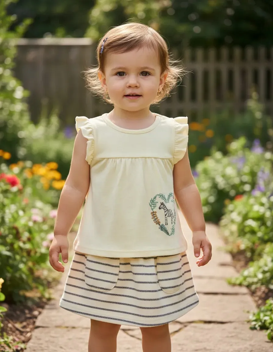 Conjunto pollera a rayas y remera de algodón
