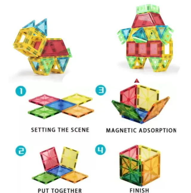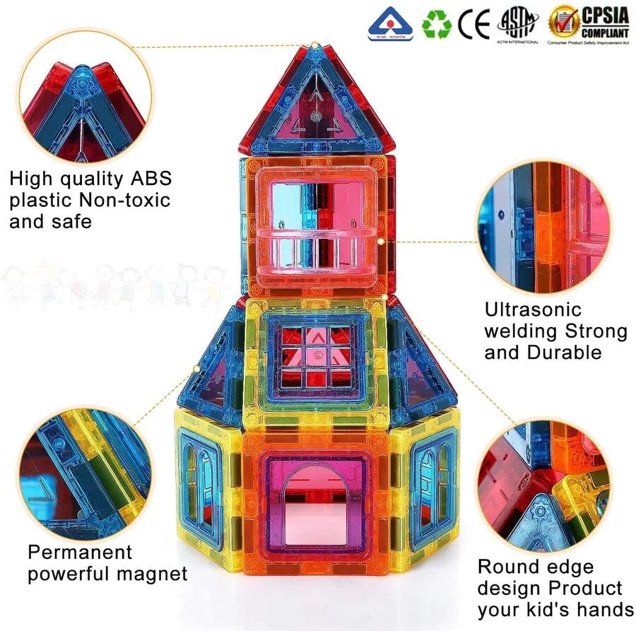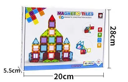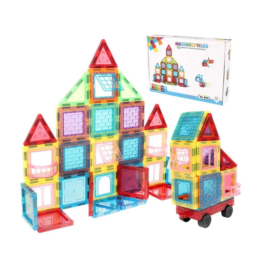 Juego de bloques piezas magnéticas construcción 45 piezas juguete didáctico para estimular la creatividad, es un rompecabezas magnético, contiene 45 piezas que son sensibles a la luz solar, la luz hará que los modelos de los niños sean más brillantes y atractivos. Plástico abs seguro, no tóxico. Edad sugerida: +24 meses
