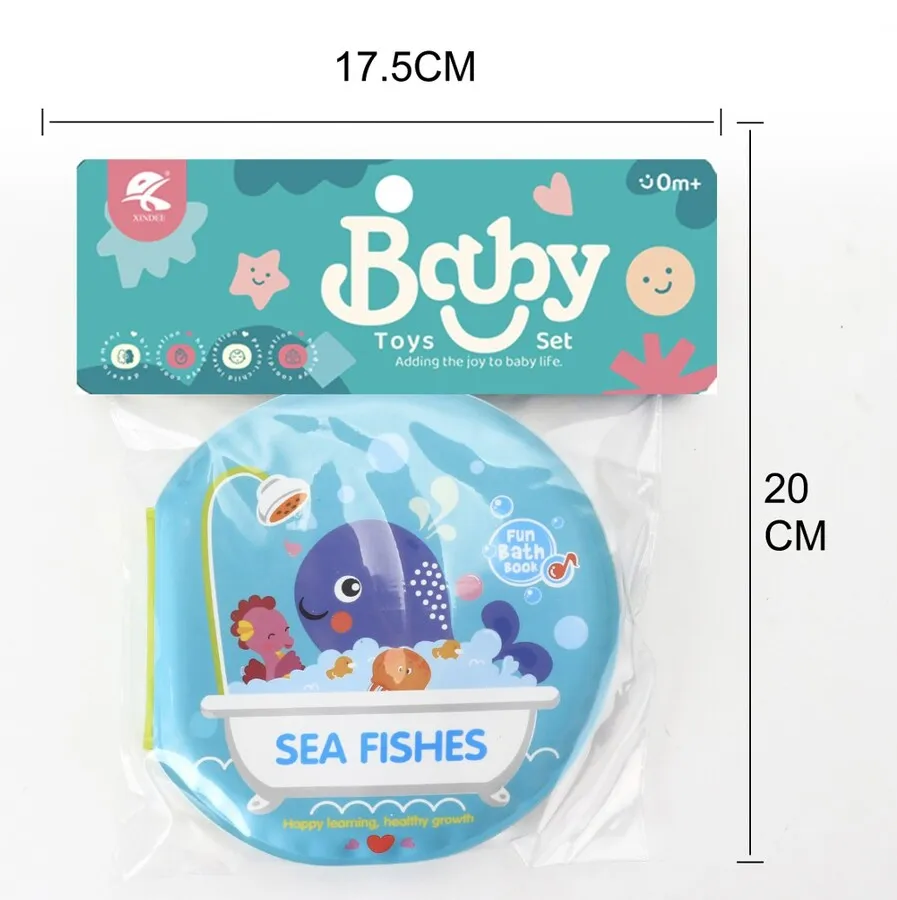 Libro didáctico y resistente al agua, ideal para el baño o juegos sensoriales.