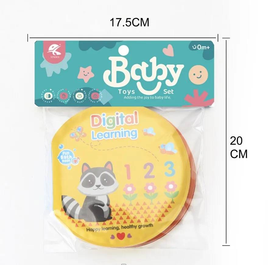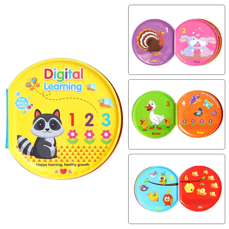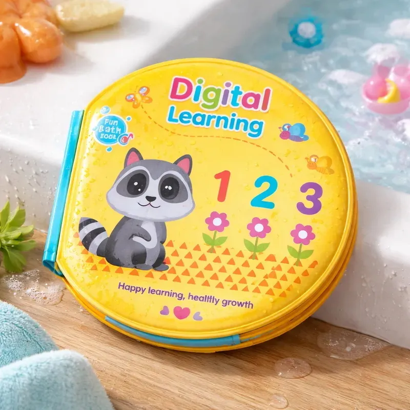 Libro didáctico y resistente al agua, ideal para el baño o juegos sensoriales.