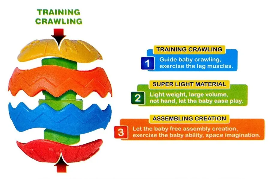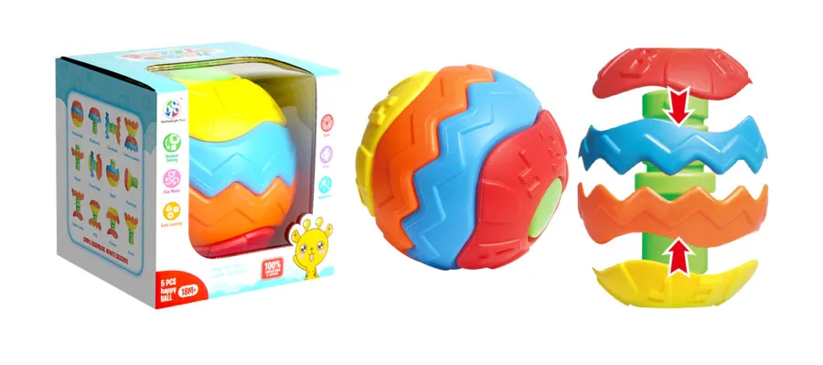 Pelota desarmable, especialmente diseñada para estimular la creatividad, imaginación y coordinación del bebe; asi como también el reconocimiento de los colores.