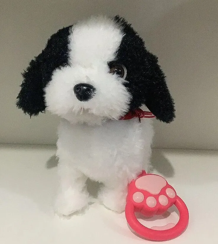 Diversión asegurada para los más pequeños con este adorable perrito de peluche que camina, ladra y repite lo que le decís.
