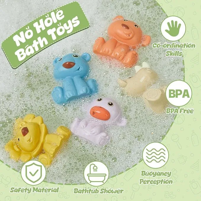 Estos juguetes de baño sin agujeros están hechos de silicona comestible y no contienen BPA, PVC ni ftalatos. Su diseño no poroso es fácil de limpiar. Después de cada uso, simplemente enjuágalos con agua y déjalos secar.