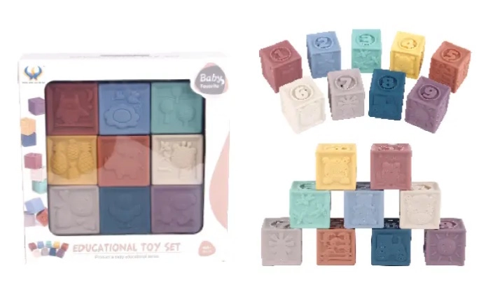 Set 9 cubos sensoriales de silicona para bebés y niños