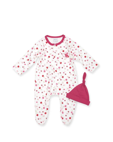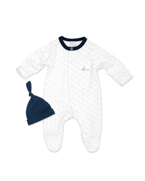 Set enterito pañalero (apertura en el frente) y gorrito. Pilim.