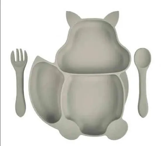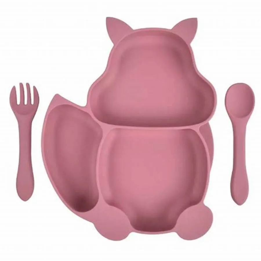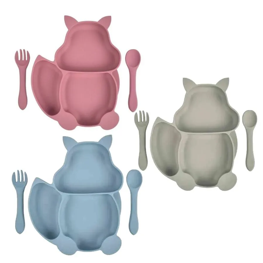 Set plato silicona ardilla con ventosa + cuchara y tenedor