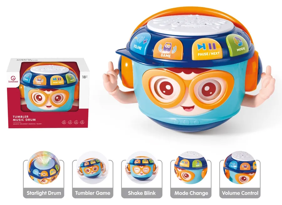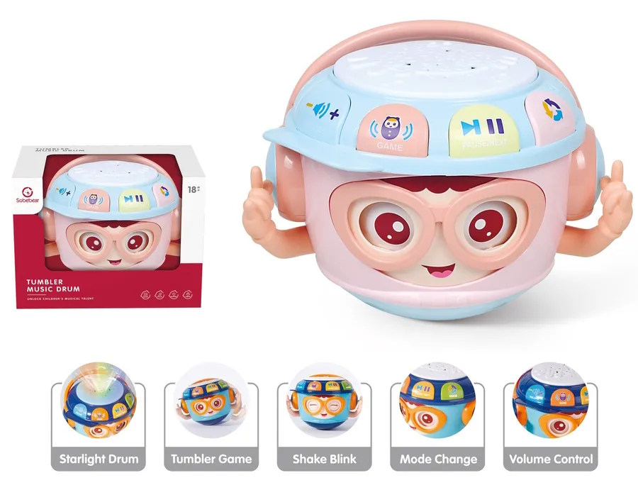 Este tambor infantil de plástico combina música , luces y proyecciones para estimular los sentidos del bebé. Sus luces parpadean al ritmo del movimiento , sus suaves brazos de goma invitan al juego seguro, y al caer la noche ????, proyecta estrellas en el techo para crear un ambiente relajante que acompaña al bebé a dormir ????.
