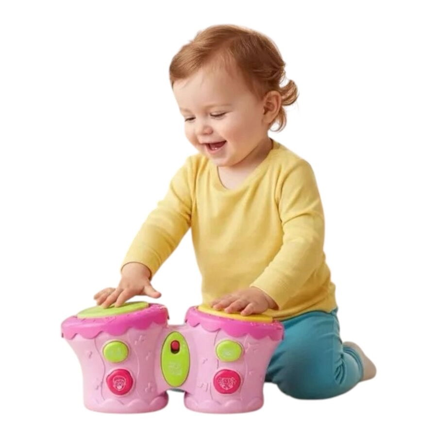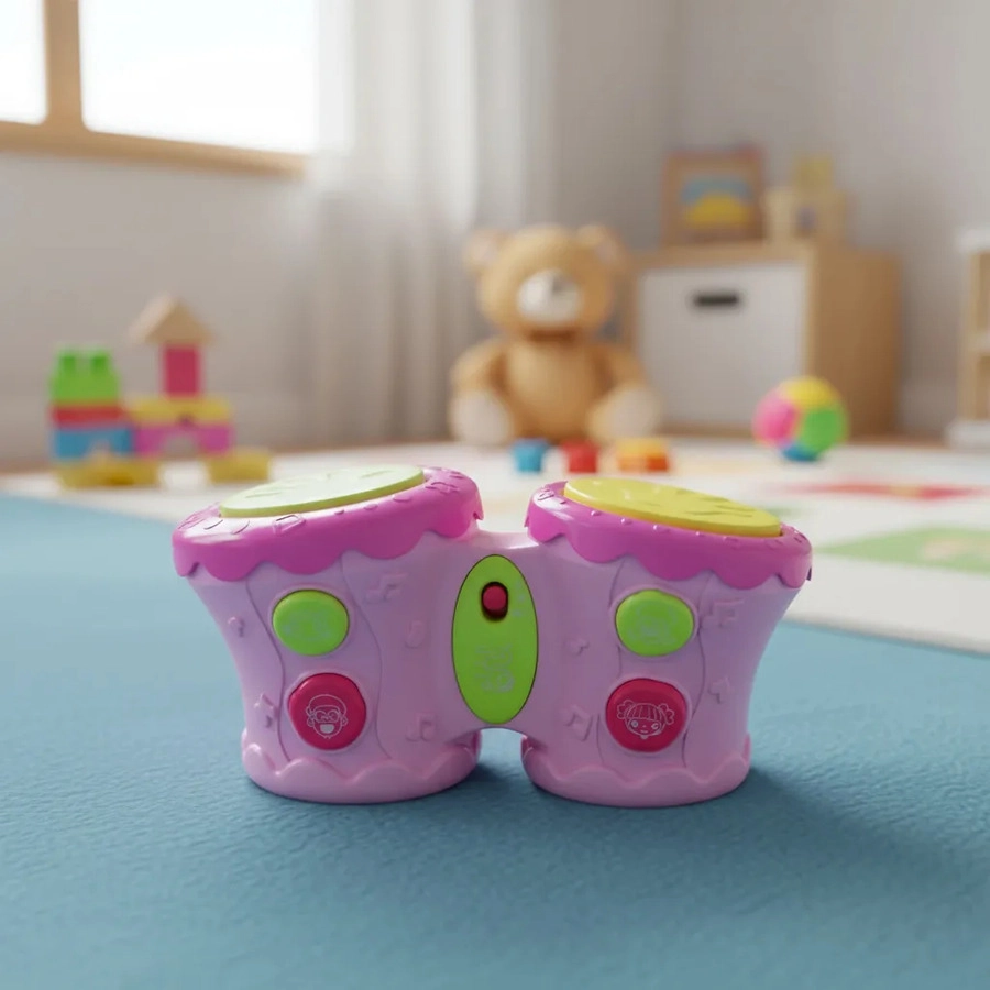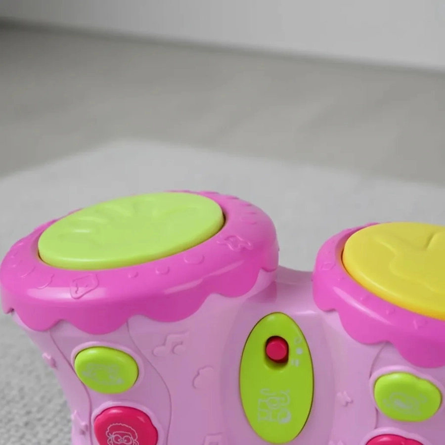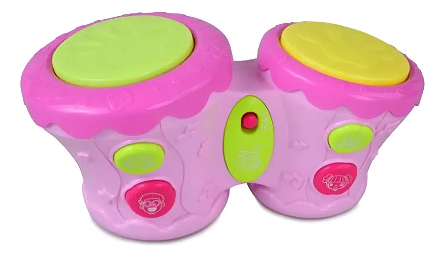 Tambores Africanos! Cuando el bebé aplaude el tambor, hará luz y música. Puede ajustar la voz para bajar o más alto. Diseño lindo, fácil de atraer a los niños. Mini tamaño, fácil de llevar. Lleva 2 pilas AA, no incluidas. Edad sugerida: + 12 meses. Colores disponibles: Rosa y celeste Material: plástico ABS, componentes electrónicos Tamaño del producto: 26,5 x 14 x 13 cm