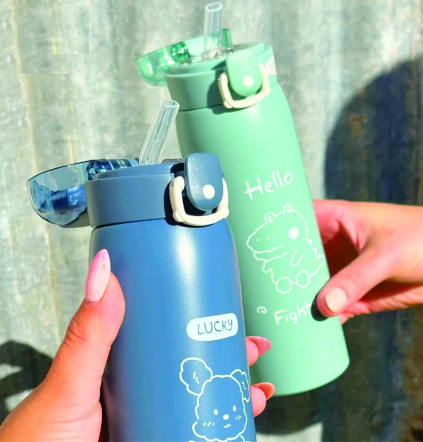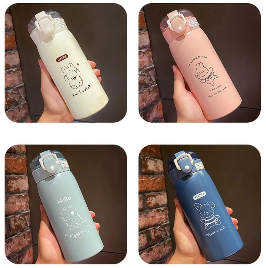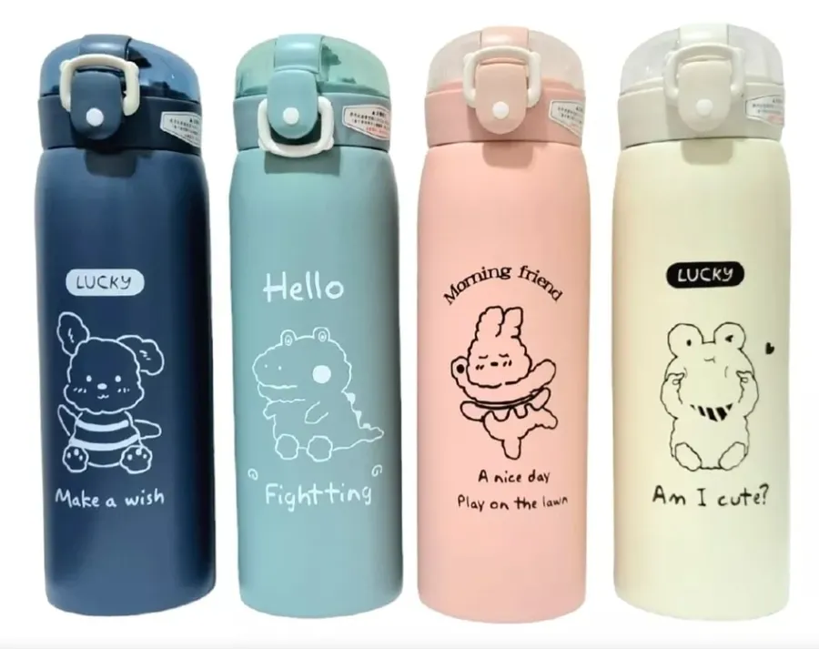 Termo infantil contorno animales con sorbito en silicona 500 ml. Este termo de acero inoxidable con sorbete de silicona es ideal para los más chicos ya que mantiene la temperatura de las bebidas calientes o frías. Su material de DOBLE PARED DE ACERO INÓXIDABLE (exterior e interior) permite que las bebidas se mantengan en la temperatura deseada por más tiempo. Características: •⁠ ⁠Capacidad: 500 ml. •⁠ ⁠Cierre tipo press click •⁠ ⁠Sorbete de silicona •⁠ ⁠Antiderrame •⁠ ⁠BPA FREE