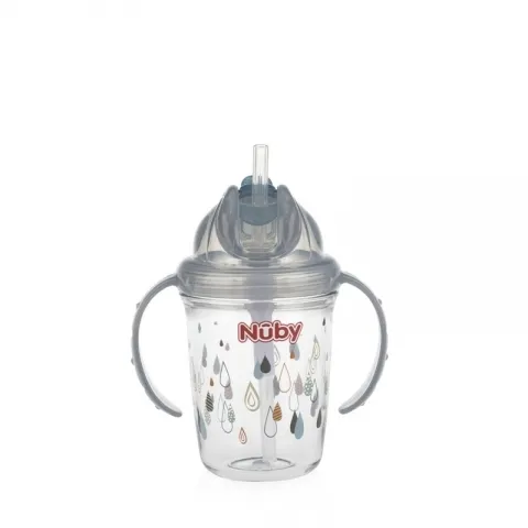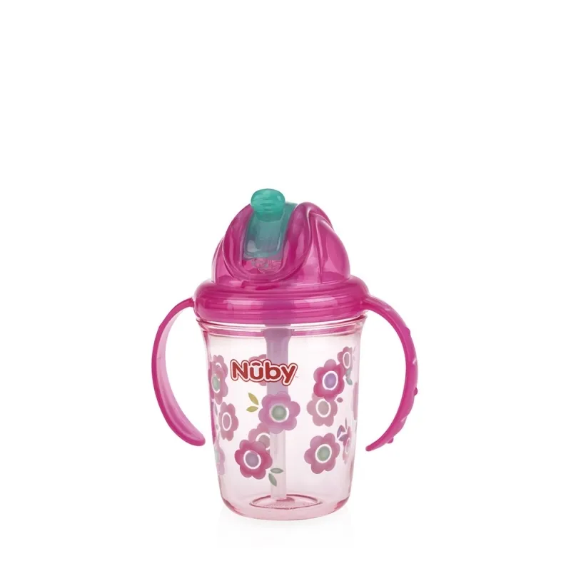 Vaso de tritán con asas y pajita de silicona retractil 240 ml. para bebé irrompible
