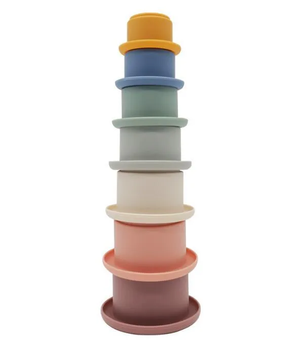 Hecho de material de silicona de grado alimenticio, libre de BPA, sin mal olor o con bordes lisos, seguro para que el bebé juegue. 7 piezas que apilan las tazas en diverso tamaño y diverso color, los niños pueden jugar el frente y la parte posterior que apilan juegos fácilmente. La parte inferior de cada taza está ahuecada con diferentes patrones lindos, los bebés pueden ver el agua que fluye de la taza, perfecta para jugar en la ducha o nadar. Útil para desarrollar niños pequeños y capacidad práctica, percepción del color, cognición digital y reconocimiento de formas mientras juegan las tazas apilables. Los niños pequeños disfrutan de la sensación de empujar el edificio y rehacerlo. Las tazas de juguete apilables son el mejor regalo para ellos, sin importar los niños o las niñas.